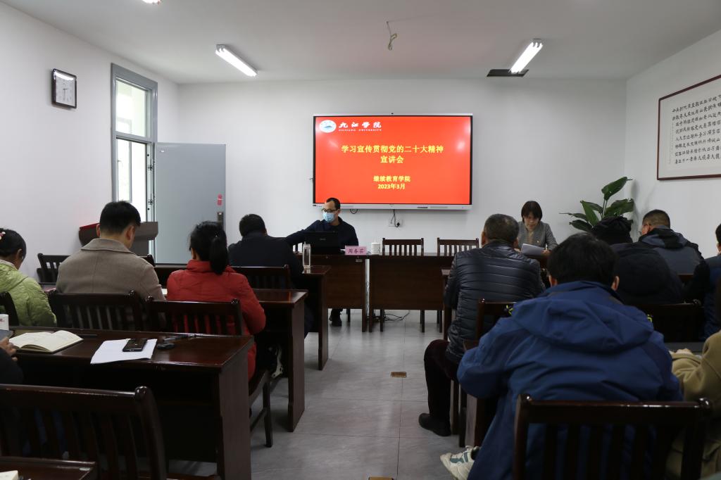 王英姿在主持会议时指出,学习宣传贯彻党的二十大精神是当前和今后一个时期全院的首要政治任务。全院教职工一要提高站位,着力凝聚思想共识;二要学深悟透,着力把准精神实质;三要见行见效,着力推动继续教育高质量发展;用党的二十大精神统一思想、指导工作,为学校继续教育发展做出新的贡献。