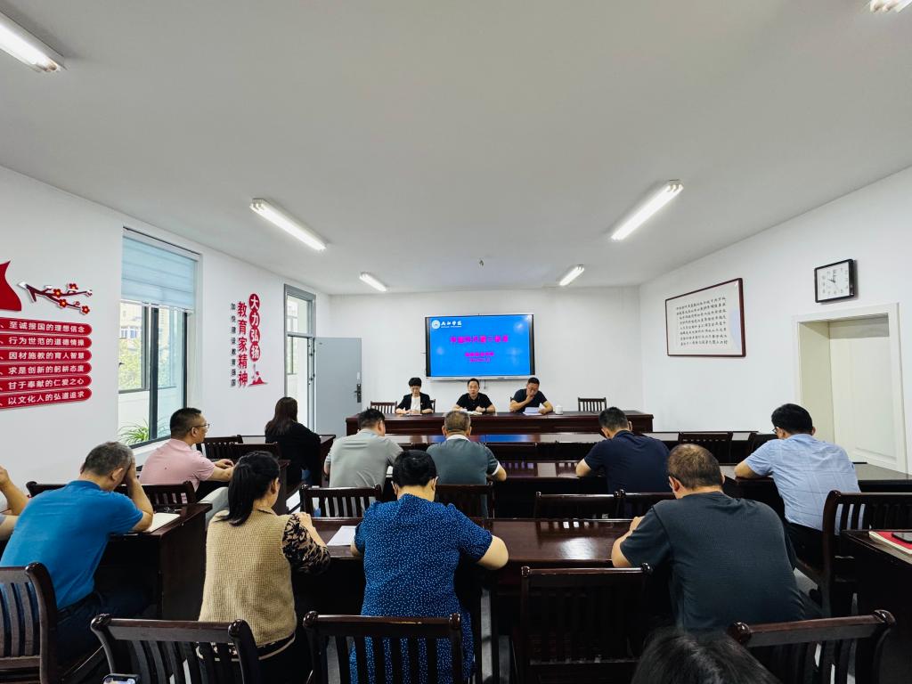 副院长贾峰带领全体教职工深入学习《新时代高校教师职业行为十项准则》。院党委副书记胡洁通报了近期8起师德失范警示教育案例。